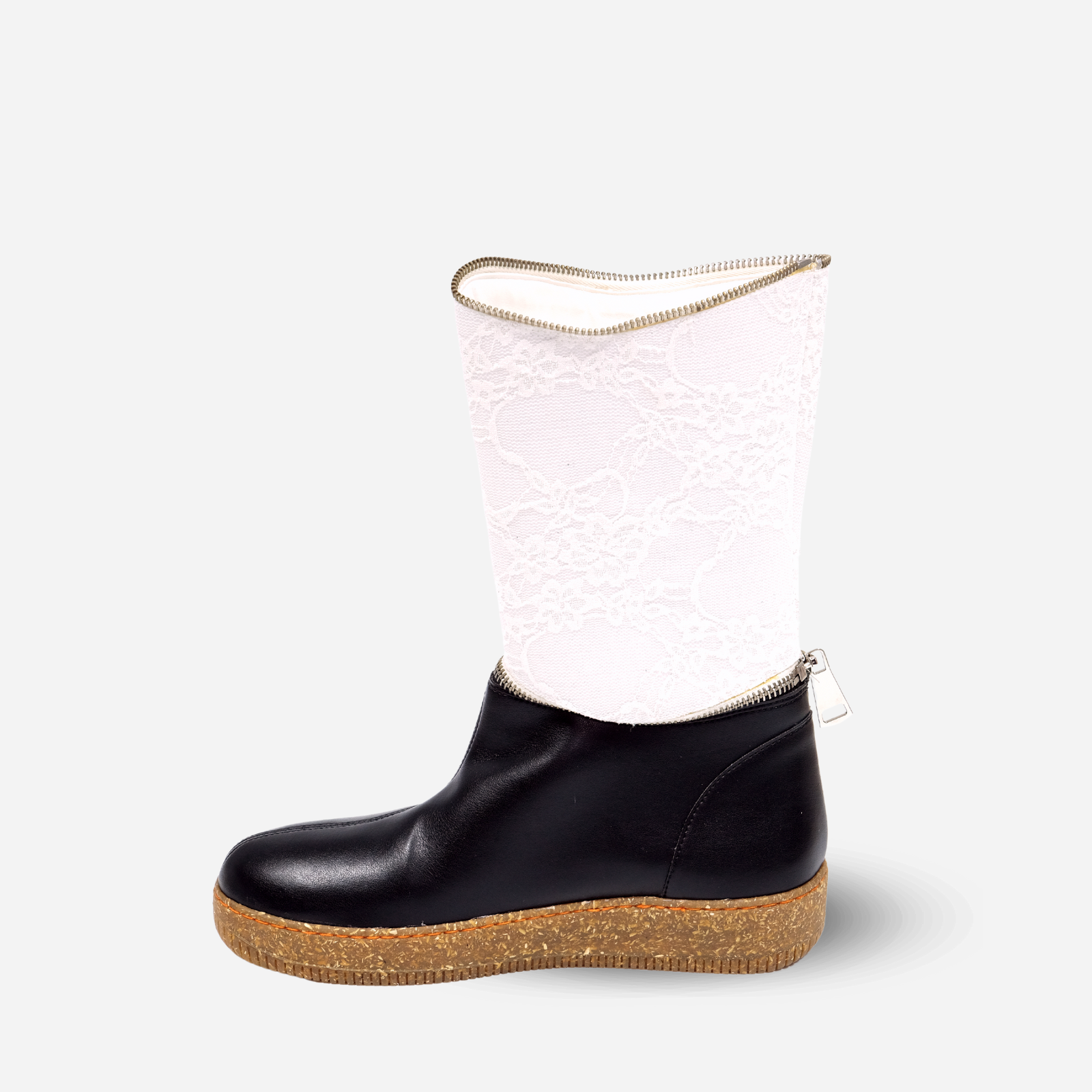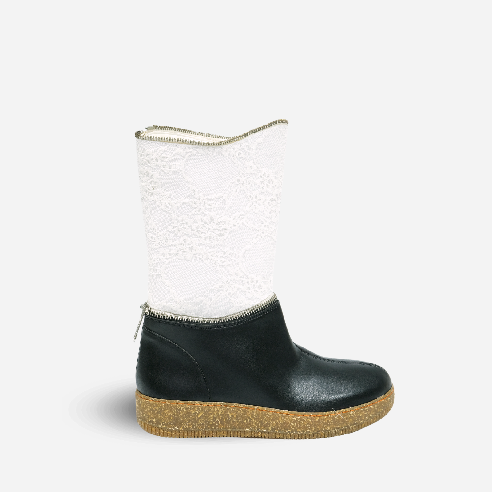 Composition: APPLESKIN ECO-LEATHER, ORGANIC ECO-LEATHER (40% recycled PL 60% bio PU), LWG LAMB LEATHER (first global environmental certification for the leather manufacturing industry), eco-sustainable lace in organic cotton, metal Zip YKK. Rubber and hemp sole (textile fiber obtained from the phloem of the stems of Cannabis sativa plants).