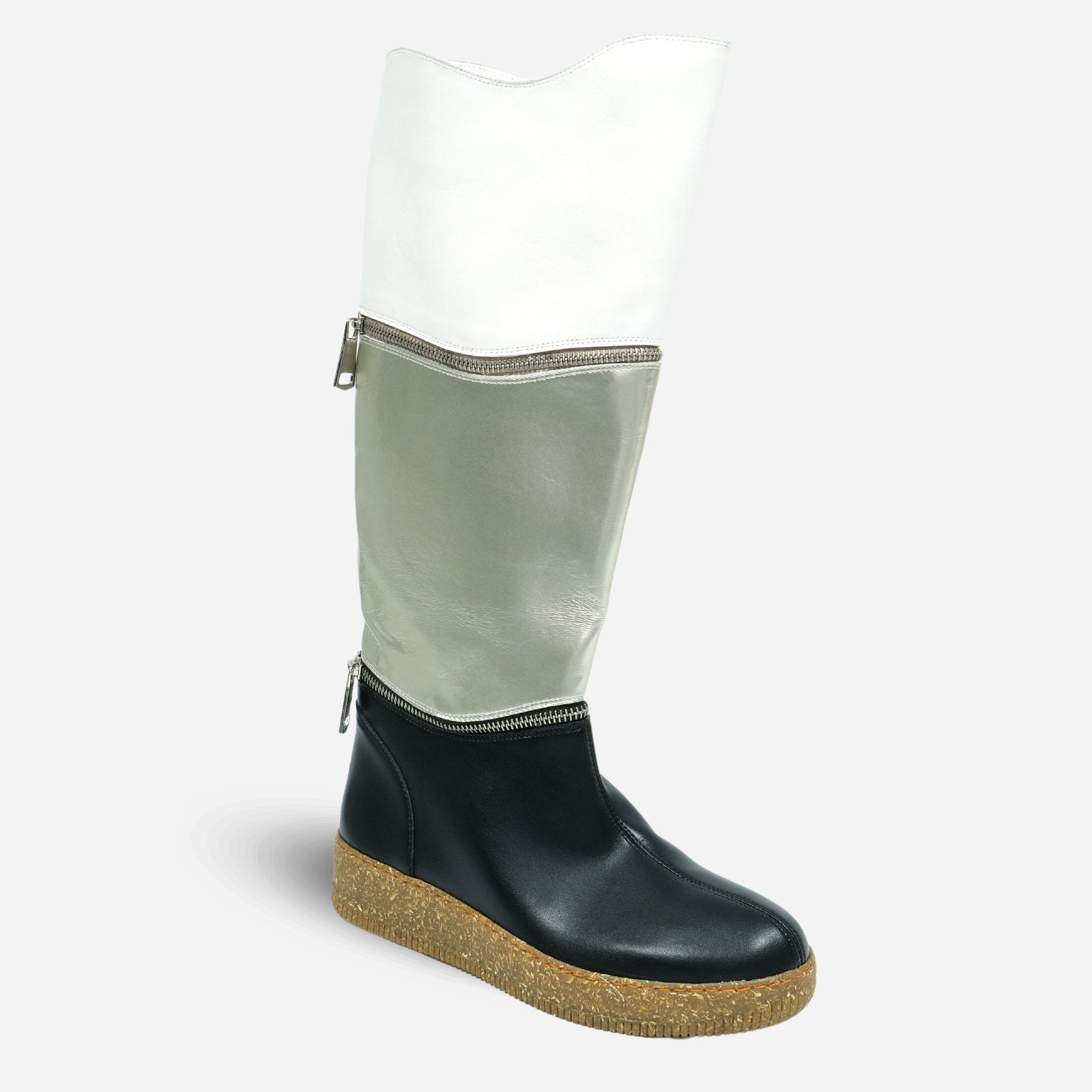 BOOT WITH TWO MODULAR ASYMMETRIC COMPENSATION BANDS. Comfort meets functionality with our Eco Leather Boot. Designed with not one, but two modular asymmetric compensation bands, these boots provide the perfect fit for your feet. You'll never have to sacrifice style for comfort again.
